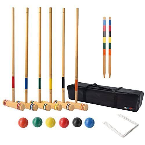 Play with 2, 4, or 6 people to see who can hit the balls through the hoops in the right sequence. Complete 6 player set with carrying case.